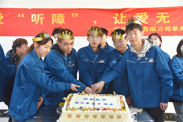 3月28日,公司黨委、工會、團委、關工委聯合舉辦了以“關愛‘聽障’”,讓愛無‘礙’”為主題的華紡股份有限公司單身員工生日會。公司黨委委員、人力行政副總經理孫玉濤,工會、團委、關工委主要負責同志、服裝車間相關負責同志以及30名聽障員工參加活動。